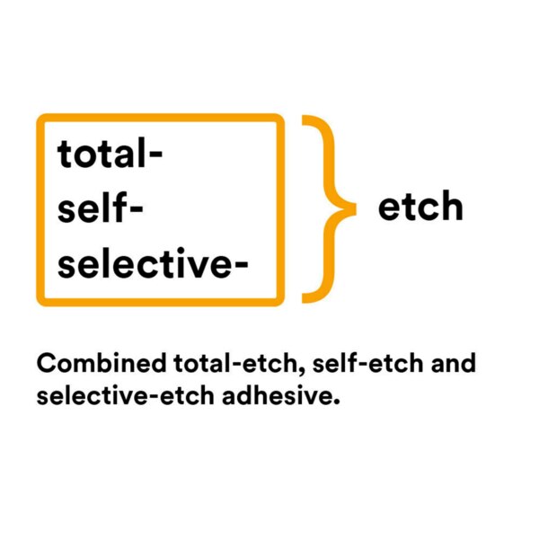 - Combined Total-Etch, Self-Etch and Selective-Etch adhesive